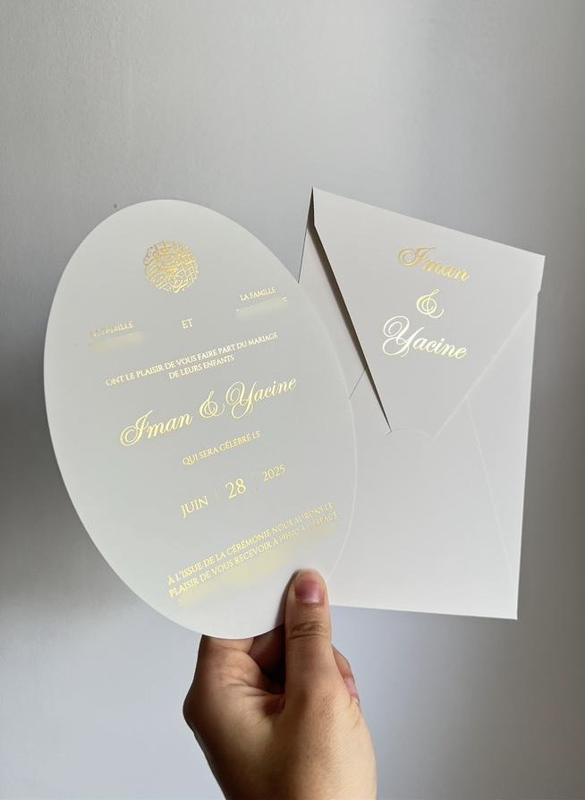 Ce faire-part ovale se distingue par ses lignes délicates et son élégance naturelle.